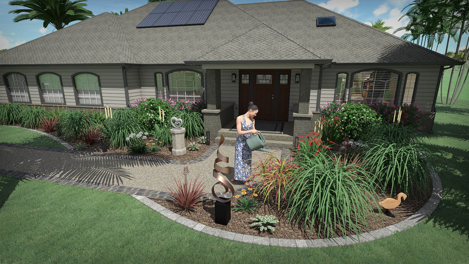 - Create driveways for your landscape design of any shape and size. Includes detailed 3D cars, mailboxes, and other objects. Both sloped and flat driveways are supported.