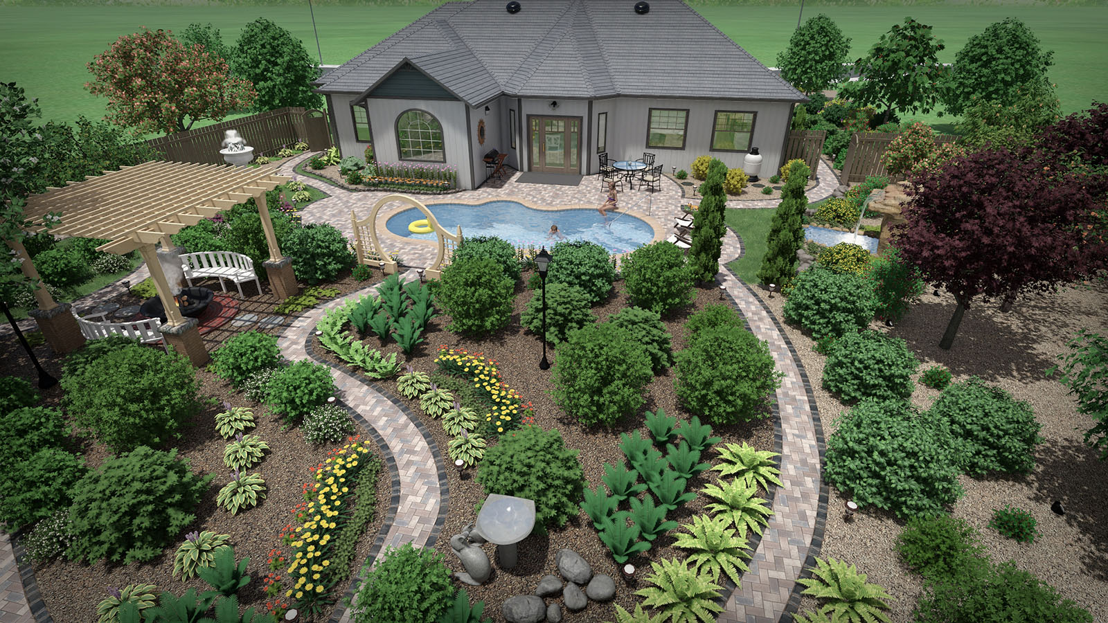Design ponds and water gardens of any shape and size, add waterfalls, fountains, and streams, and choose from a large library of accessories and decorations.