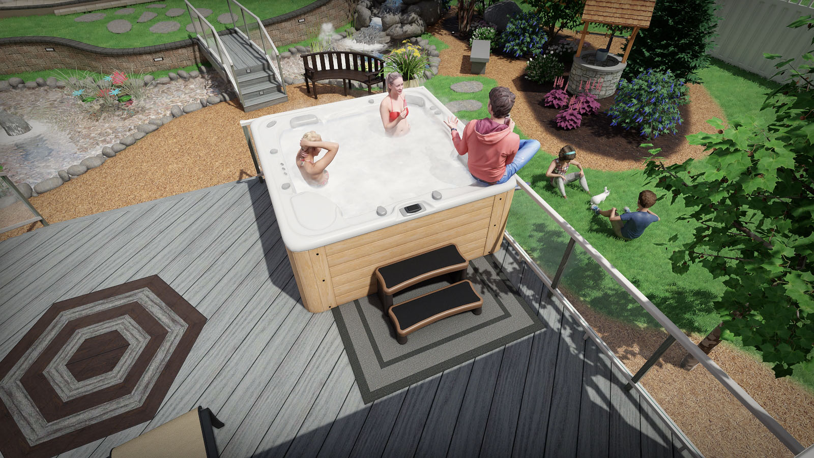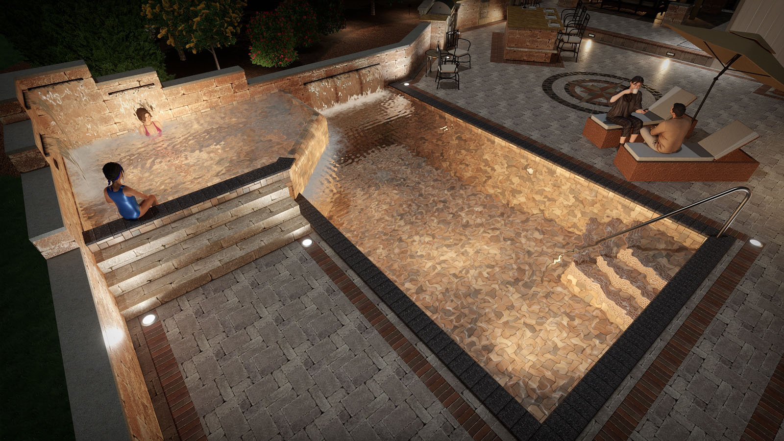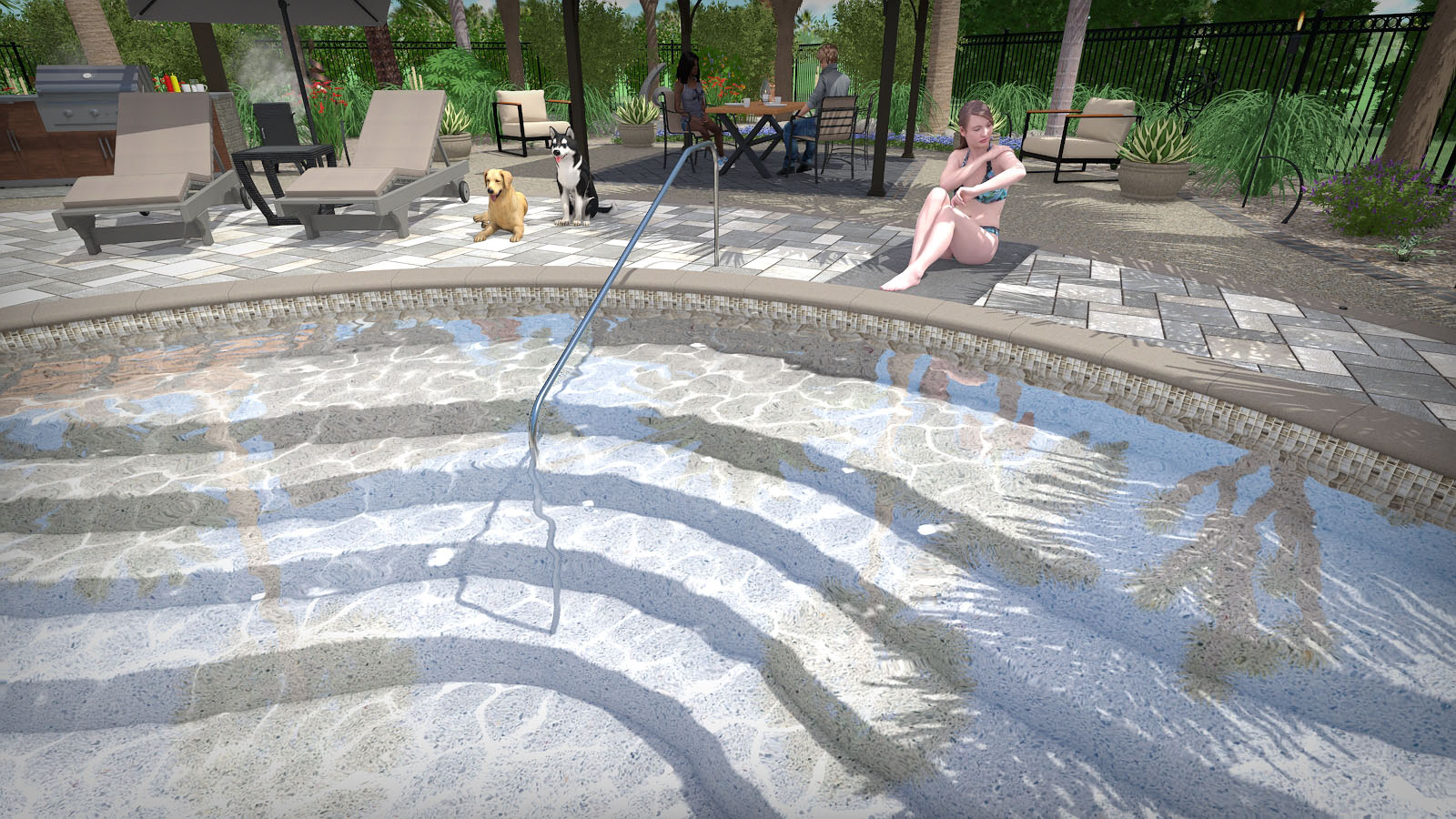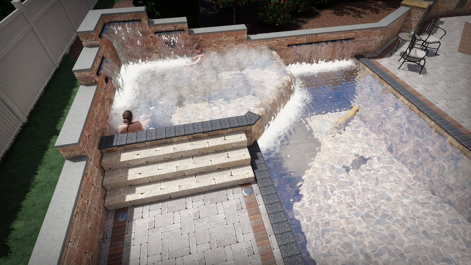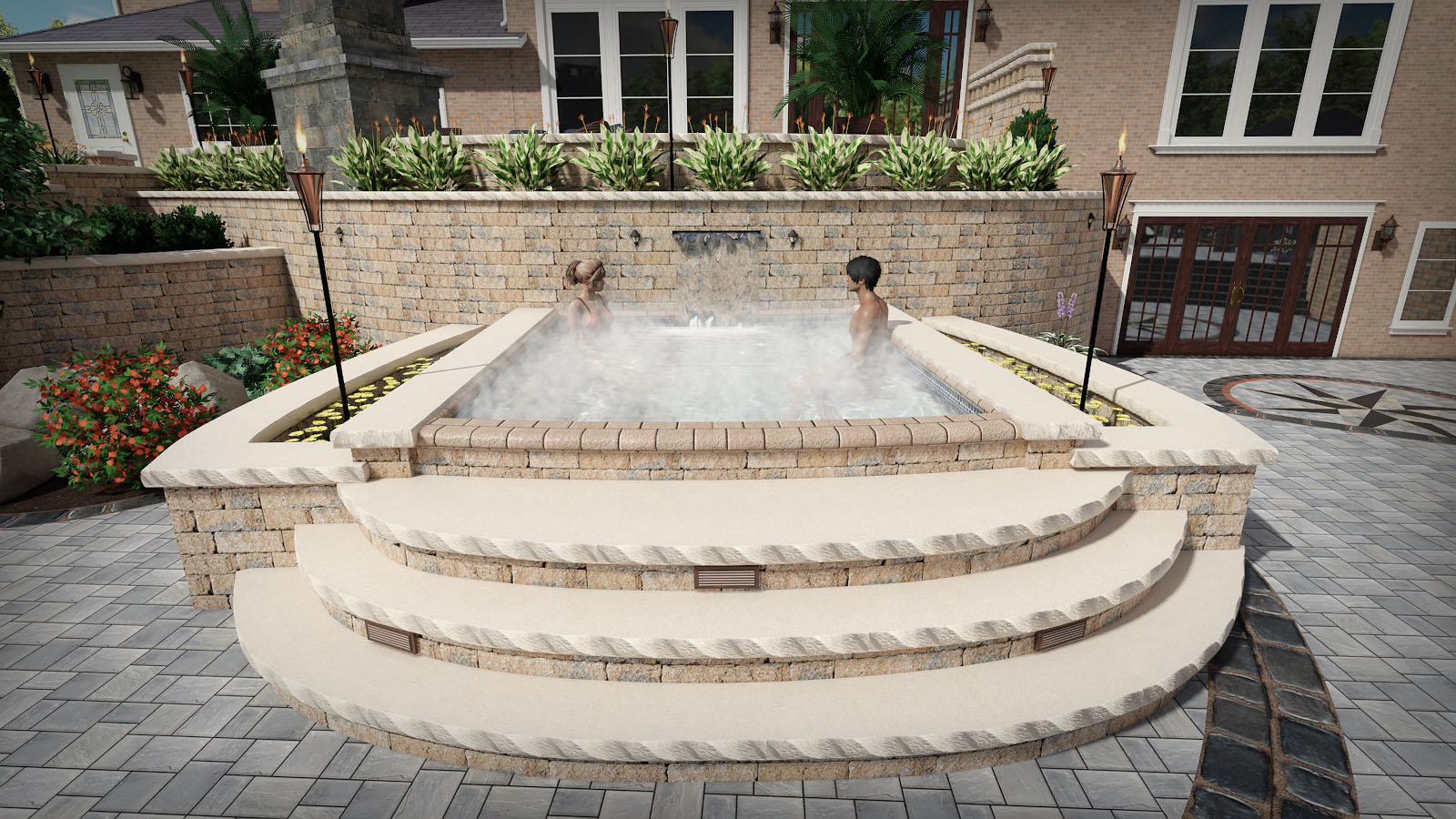 Create an unlimited variety of spas using the intuitive spa design tools included with Realtime Landscaping Architect. Design spas that flow into a swimming pool, are elevated or recessed into the pool decking, and even spas with infinity edges.