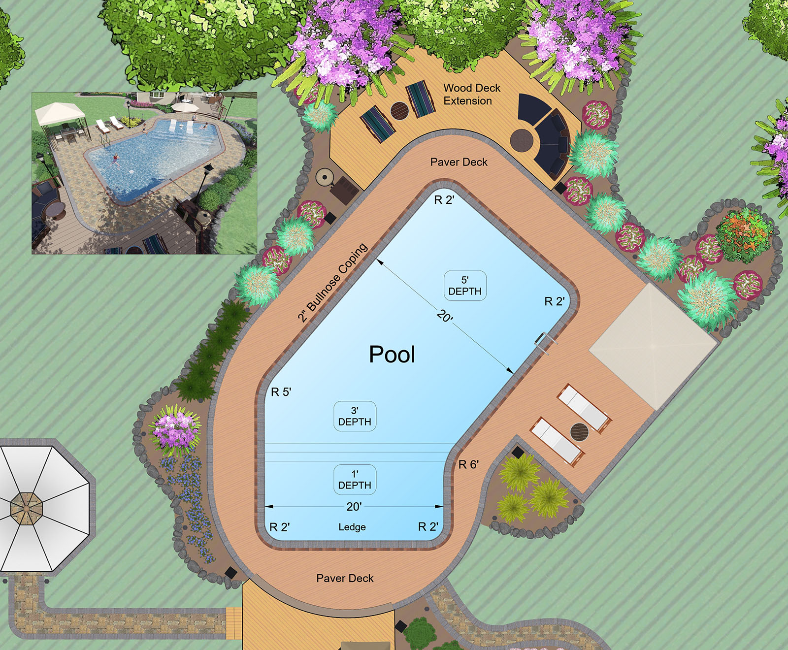Win more bids by showing your clients their complete landscape with your swimming pool design as the focal point.